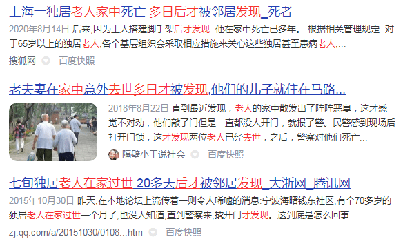 觸!目!驚!心!近年來,獨(dú)居老人死在家中無(wú)人知曉的事件多發(fā)。頻繁出現(xiàn)這類事件的根本原因是由于近年來隨著社會(huì)的快速發(fā)展,年輕人面臨來自生活、工作各方面的壓力,與父母在一起的時(shí)間越來越少,導(dǎo)致獨(dú)居老人的日常生活缺少照料,發(fā)生危險(xiǎn)和意外無(wú)法獲得及時(shí)救助。