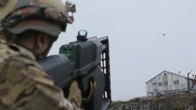 這種手持無(wú)人機(jī)反制槍是一種輕型瞄準(zhǔn)射擊設(shè)備,看起來(lái)像是現(xiàn)代戰(zhàn)爭(zhēng)中的東西。瞄準(zhǔn)目標(biāo)扣動(dòng)扳機(jī)后立即啟動(dòng),它將斷開(kāi)飛手與無(wú)人機(jī)之間的通信。