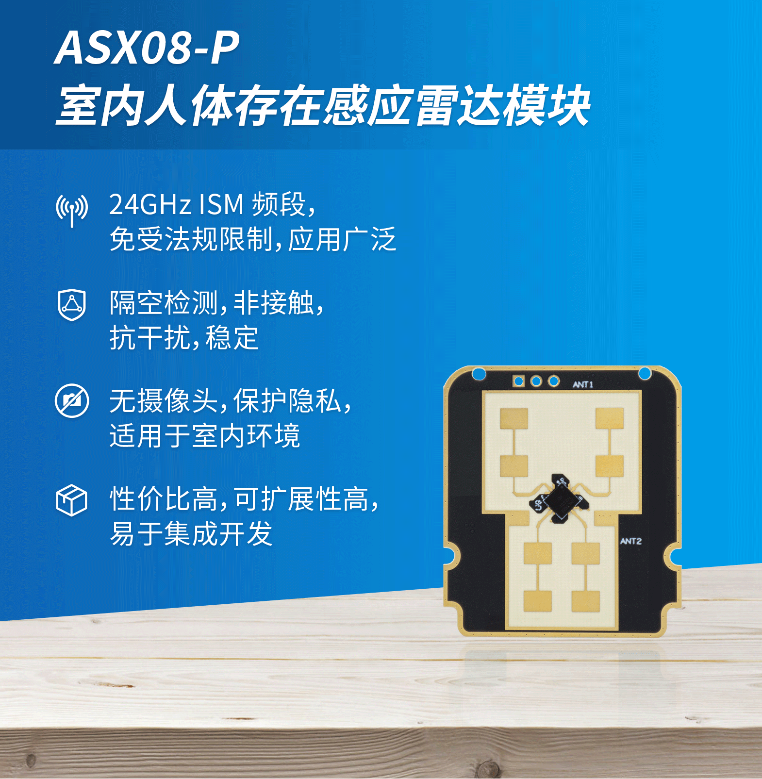 ASX02、ASX08-P、ASX01/SW產(chǎn)品是用于室內(nèi)人體存在感應(yīng)和跟蹤的毫米波雷達(dá)模塊,采用具有高復(fù)雜度和高性 能的FMCW調(diào)制模式,結(jié)合先進(jìn)的雷達(dá)算法和深度機(jī)器學(xué)習(xí),能夠精準(zhǔn)得知探測(cè)范圍內(nèi)有人/無人、運(yùn)動(dòng)/靜止?fàn)顟B(tài),并輸出目標(biāo)的坐標(biāo)參數(shù)。